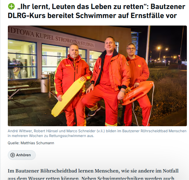 Die DLRG Bautzen e.V. spricht dem Lions Club Bautzen ihren ausdrücklichen Dank für die Förderung der Rettungsschwimmerausbildung aus. Diese Unterstützung ermöglicht es uns, junge Menschen fundiert auszubilden und so die Wasserrettung in unserer Region langfristig zu sichern. Das Engagement des Lions Clubs ist ein wertvolles Zeichen für gelebte Verantwortung und Gemeinschaftssinn.
